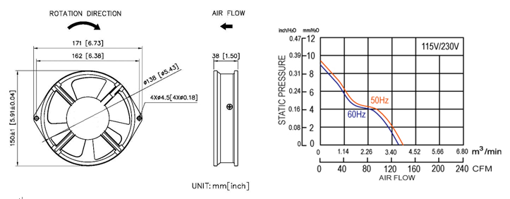 - Motor: AC Shaded Pole Type and Outer Rotor