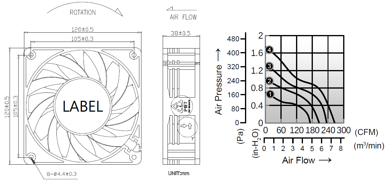 - Impeller: Plastic (UL 94V-0)