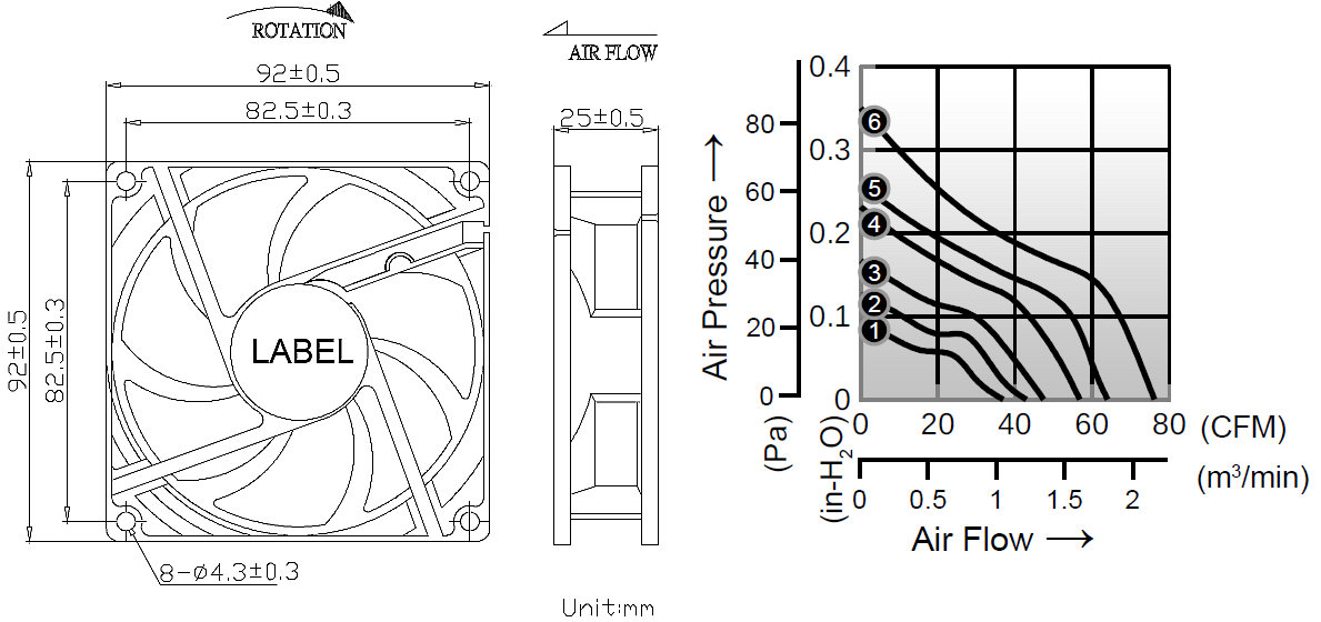 - Impeller: Plastic (UL 94V-0)