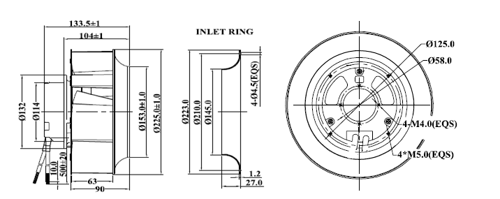 - Technical Features: Control input 0-10VDC/PWM, Tach output, Locked rotor protection, reverse polarity, Current limited, soft start
